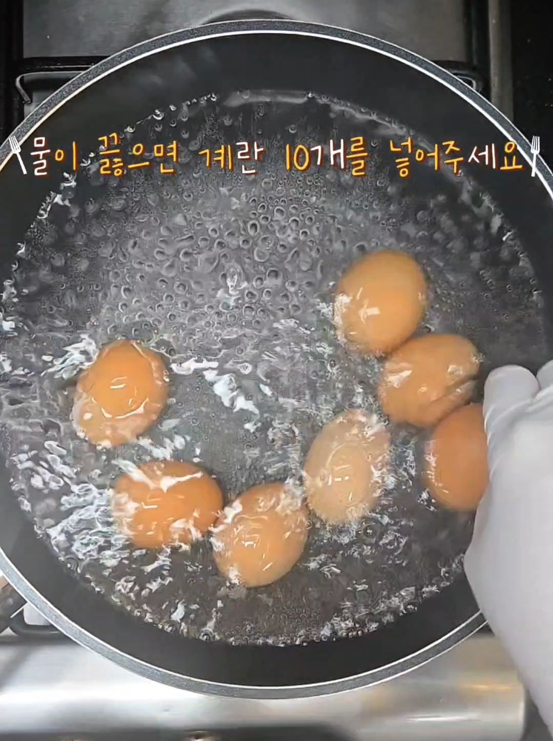 3. 끓는 물에 계란 10개를 넣고 삶아줍니다.