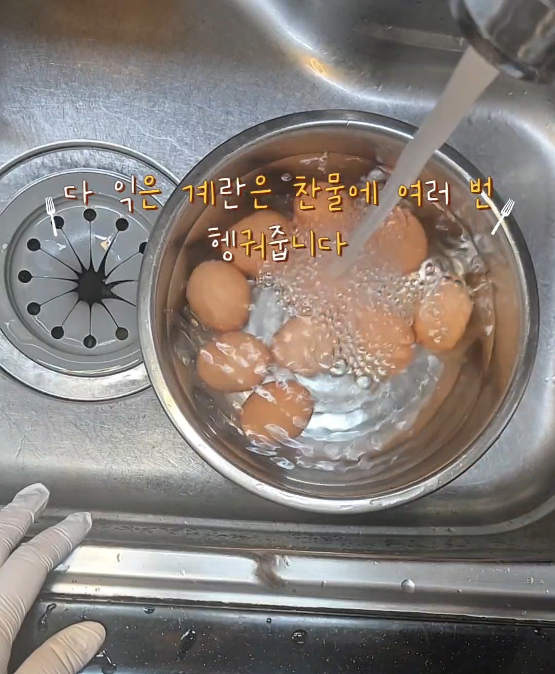5. 다 익은 계란은 얼음물이나 차가운 물에
