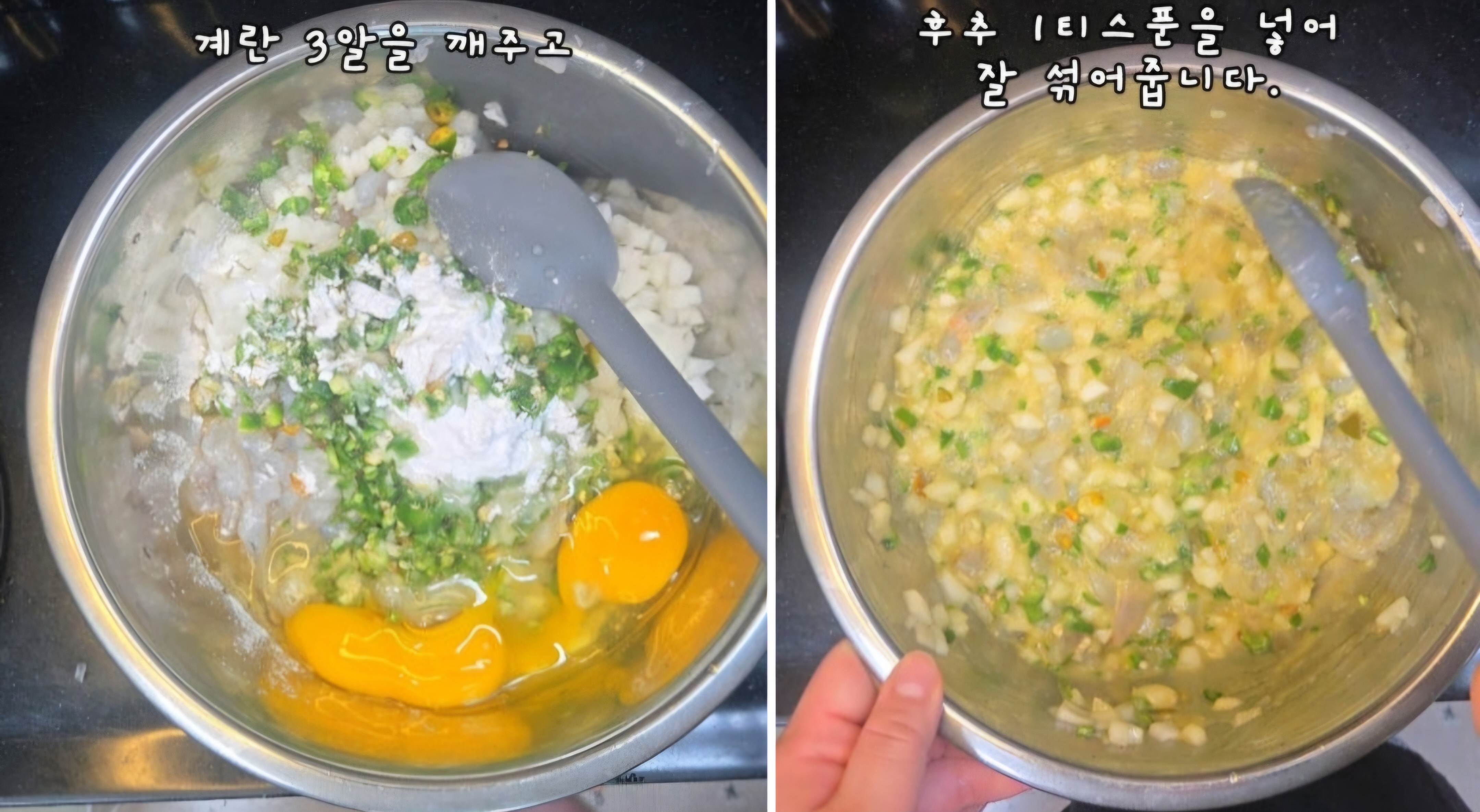▶️ 초퍼 있으시면 초퍼로 새우 다지셔도 돼요!저는 설거지하기 귀찮아서 그냥 제가 다졌지만...🤦♀️ㅎㅎ